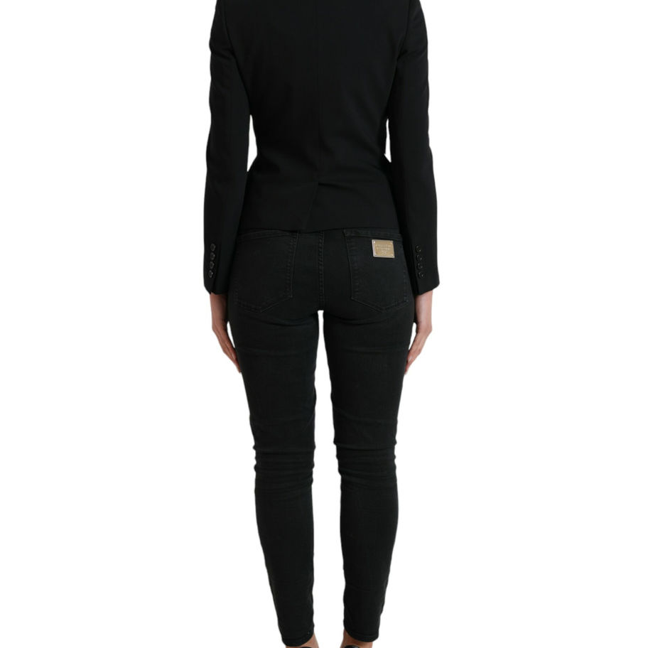 Step out in elegance with this exquisite Dolce & Gabbana wool blend blazer, a true testament to luxury and high craftsmanship. Crafted in Italy, this stylish blazer boasts peak lapels, a front button fastening for a secure fit, and sophisticated front flap pockets. Its long sleeves end in buttoned cuffs, adding a classic touch to the tailored silhouette. The blazer is fully lined, ensuring comfort and a flawless drape. Ideal for discerning fashion aficionados looking for an exclusive wardrobe staple.