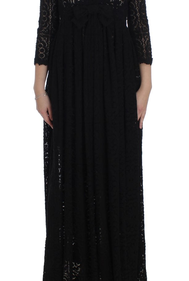 Step into the world of luxury and elegance with this stunning Dolce & Gabbana full-length dress. Featuring intricate floral embroidery and a sleek black color, this dress is perfect for those who desire a chic, timeless look. Its 3/4 sleeves add a touch of sophistication, making it ideal for upscale events or a stylish night out.