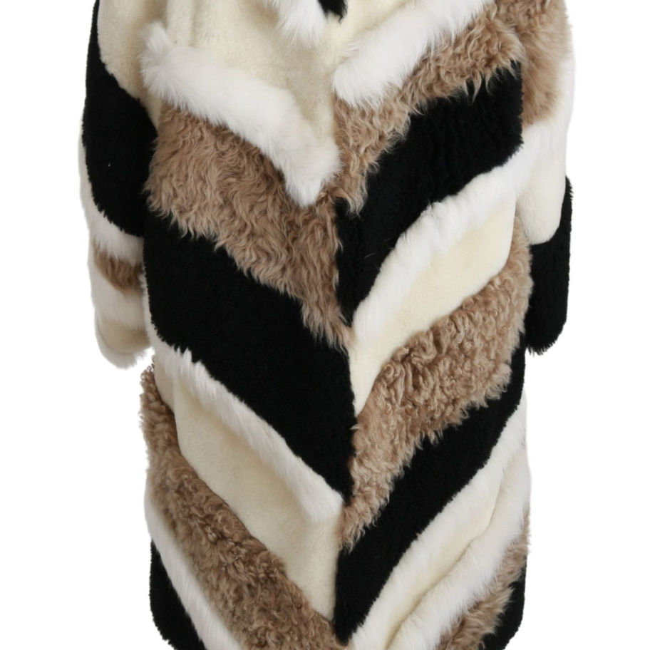 Elegant Multicolor Shearling Cape Coat